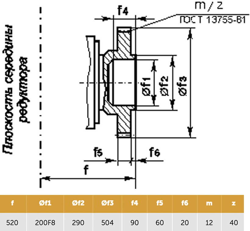 Присоединительные размеры тихоходного вала для присоединения командоаппарата