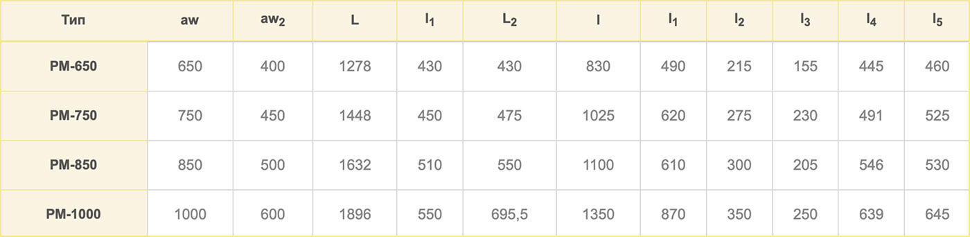 ТАБЛ 2. Габаритные и присоединительные размеры. РМ-650, РМ-750, РМ-850, РМ-1000