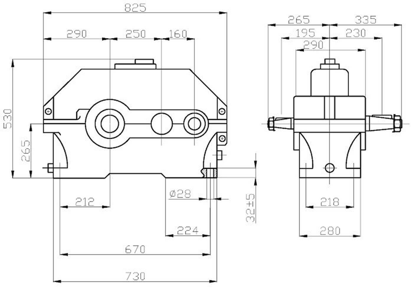 Двухступенчатый цилиндрический редуктор 1Ц2У-250 (Ц2У-250) с параллельным расположением валов используется для повышения крутящего момента и снижения скорости вращения. Две ступени с зубчатыми передачами обеспечивают передаточное отношение от 8 до 40. Номинальный крутящий момент на тихоходном валу достигает 5000 Н*м, радиальная нагрузка — 18000 Н. Редуктор 1Ц2У-250 доступен в 12-ти вариантах сборки с различным исполнением валов. Краска на полимерной основе защищает чугунный корпус от вредного воздействия окружающей среды.