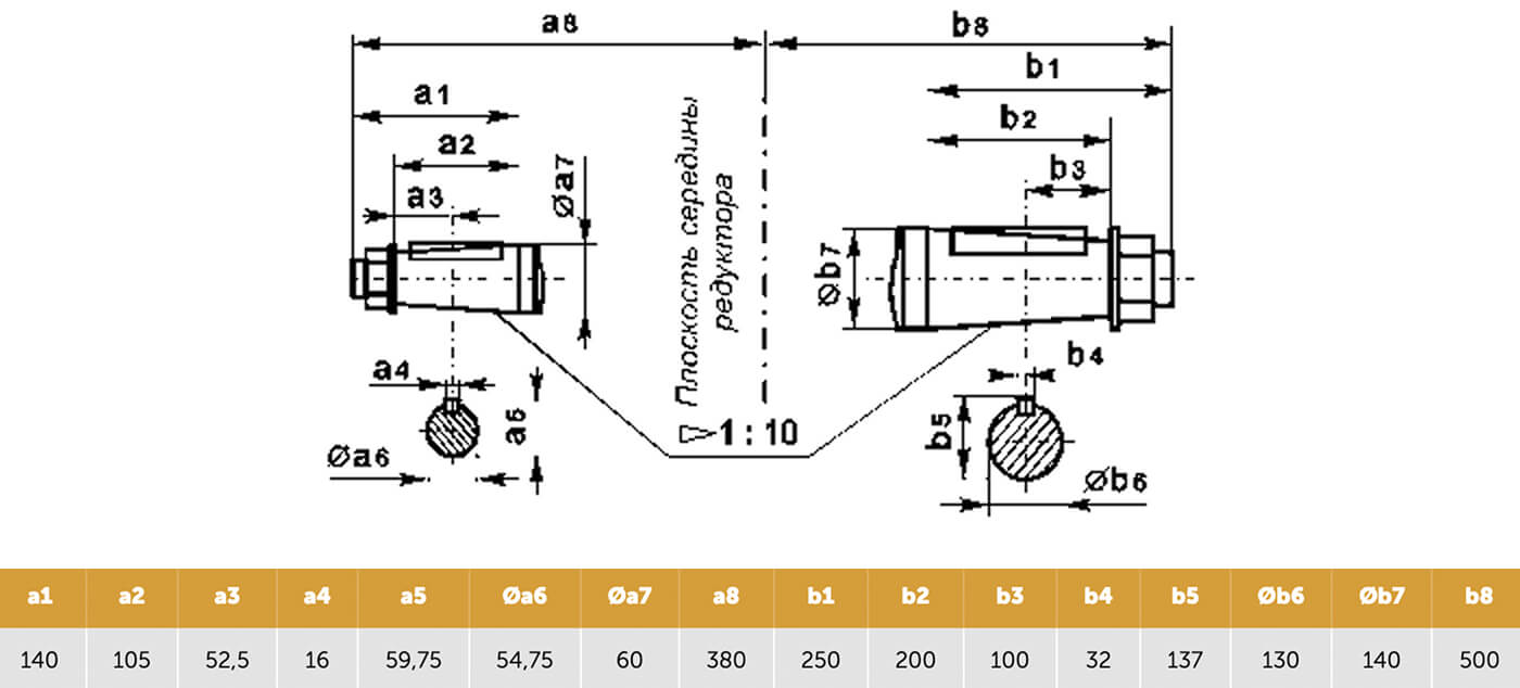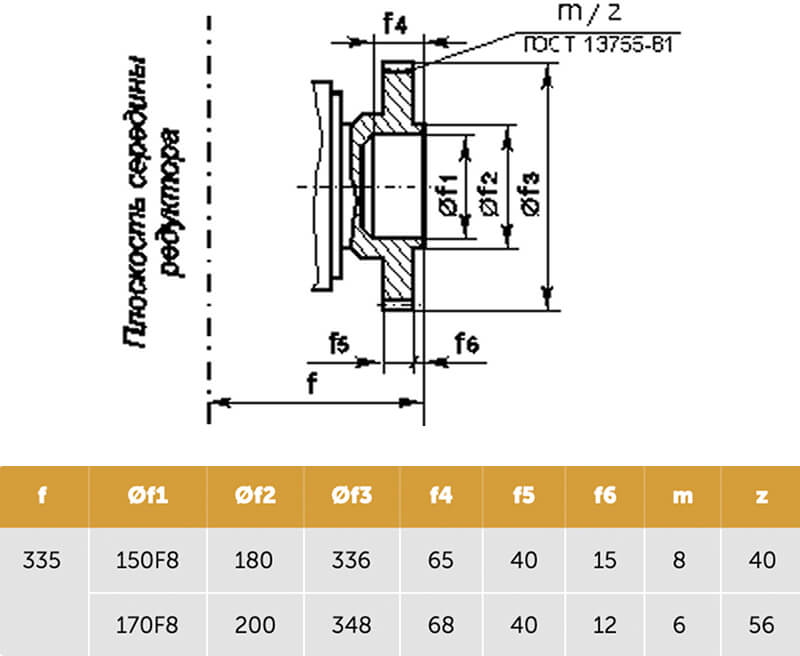 Присоединительные размеры тихоходного вала в виде части зубчатой муфты