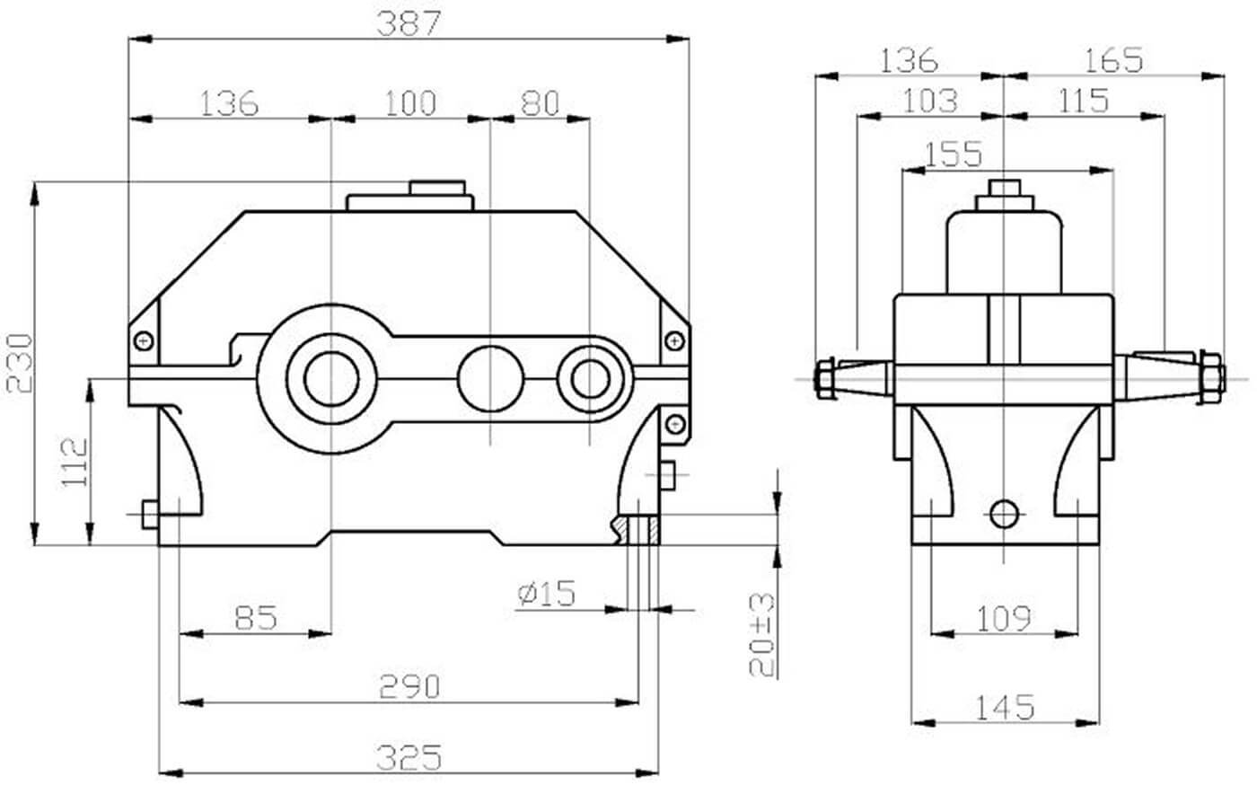 Редуктор 1Ц2У-100-10-23Ц У2 ТУ2-056-243-86 1Ц2У - редуктор цилиндрический двухступенчатый 100 - межосевое расстояние, мм 10 - номинальное передаточное число 23 - вариант сборки Ц - цилиндрический конец тихоходного вала У - климатическое исполнение 2 - категория размещения