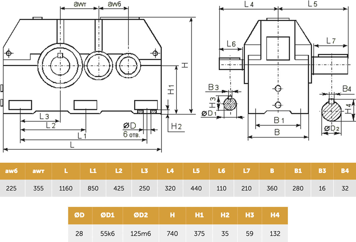 Присоединительные размеры выходных валов