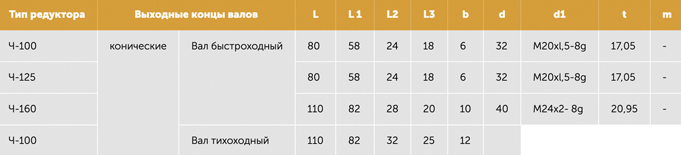 Присоединительные размеры выходных концов валов