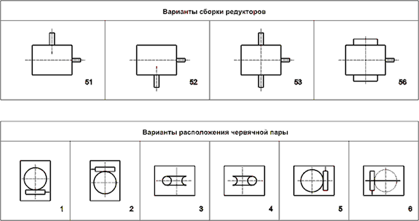 Варианты сборки редуктора и расположения червячной пары