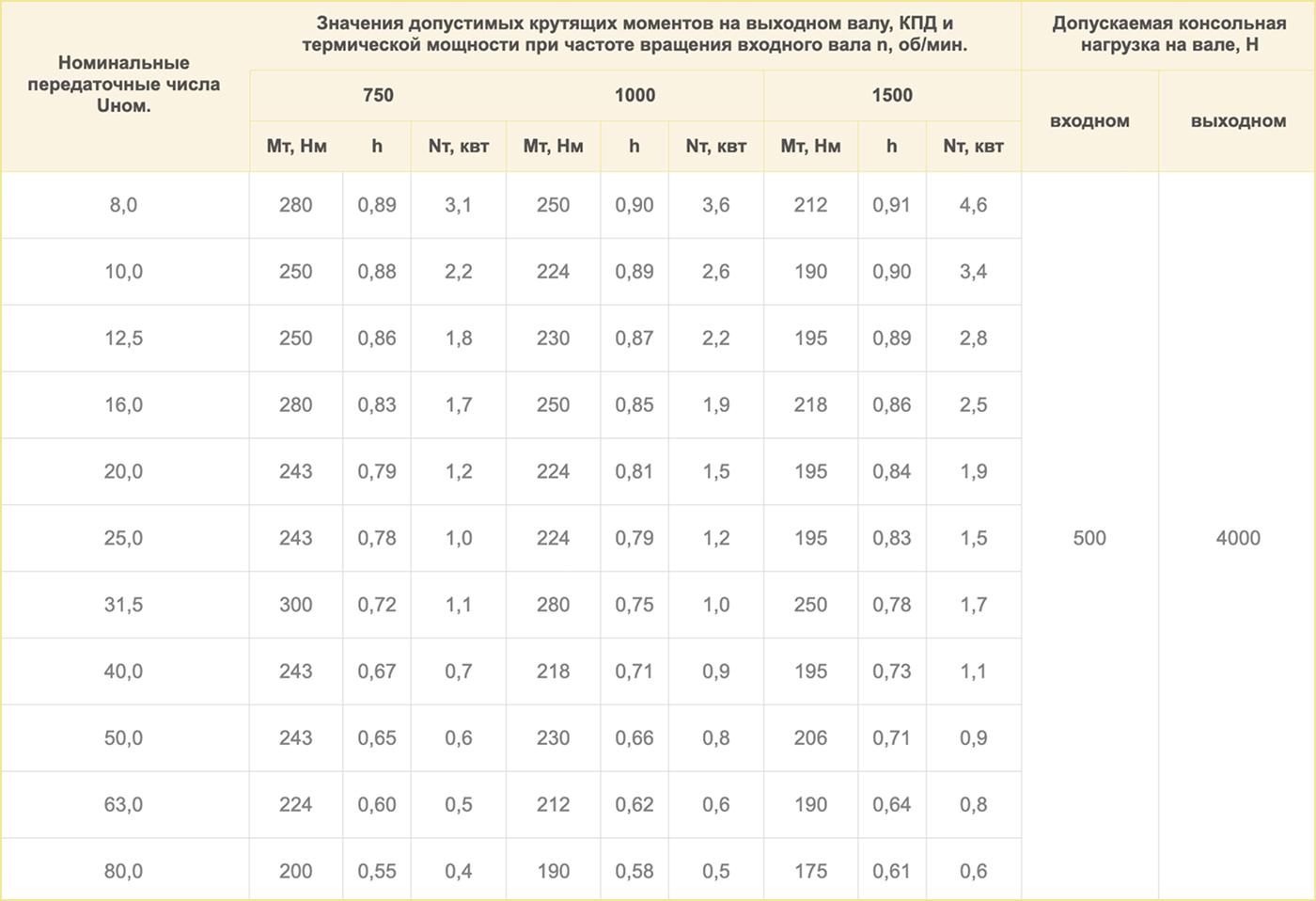 Базовые условия использования редукторов: