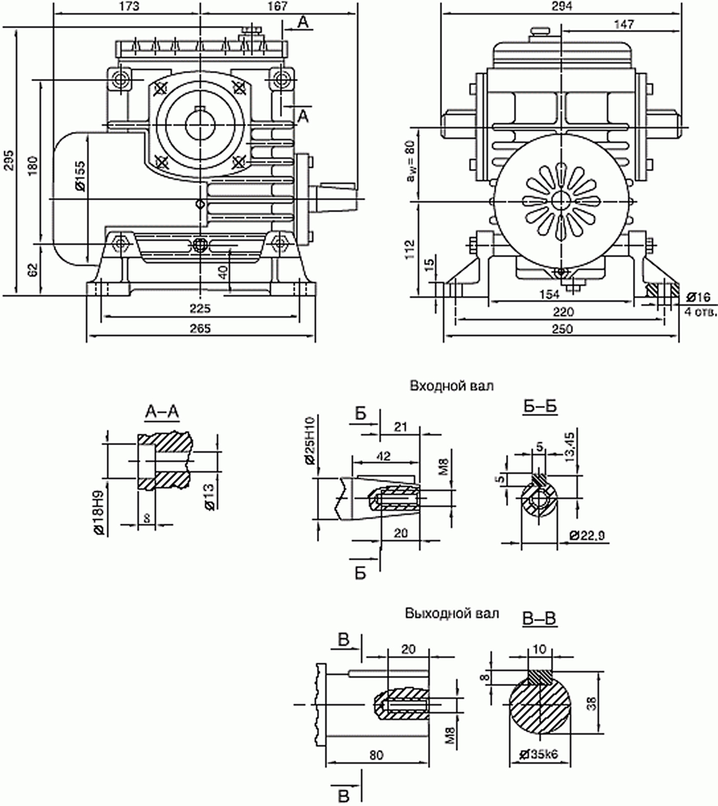 Редуктор Ч-80-40-52-1-2 ВУЗ, ТУ2-056-181-79, что означает: редуктор червячный одноступенчатый универсальный типа Ч с межосевым расстоянием 80 мм, номинальным передаточным числом 40, вариантом сборки 52, с расположением червяка под колесом (вариант 1 расположениz червячной пары), вариантом установки с лапами 2, с вентилятором В, в климатическом исполнении У с категорией размещения 3.