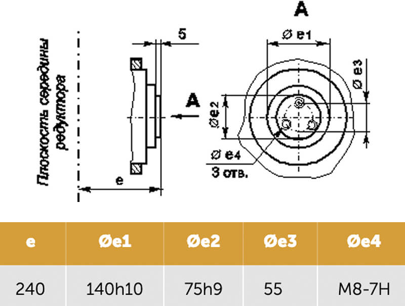 Присоединительные размеры тихоходного вала для присоединения командоаппарата