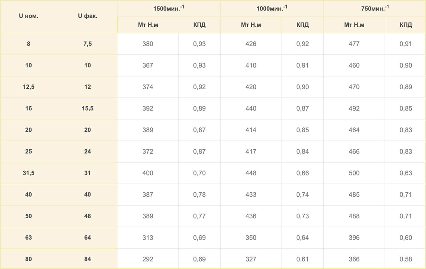 U ном; U фак.- значения номинального и фактического передаточных чисел; 1500 мин-1; 1000 мин-1; 750 мин-1 - частота вращения вала; Мт – максимально допустимый крутящий момент, Н•м; Рб – консольная нагрузка на середину шейки быстроходного вала, Н; Рт – консольная нагрузка на середину шейки тихоходного вала, Н; В скобках указана масса редуктора в алюминиевом корпусе.