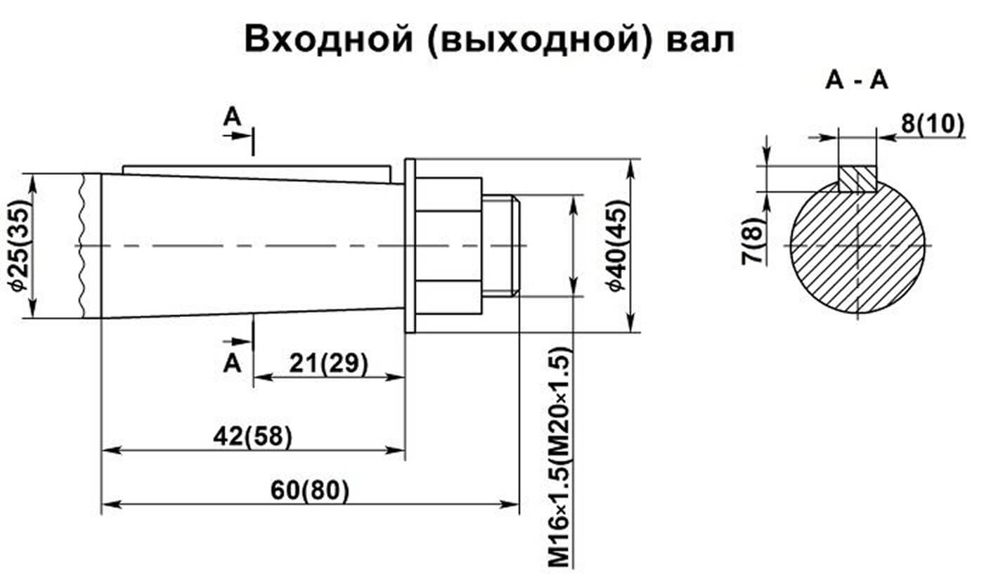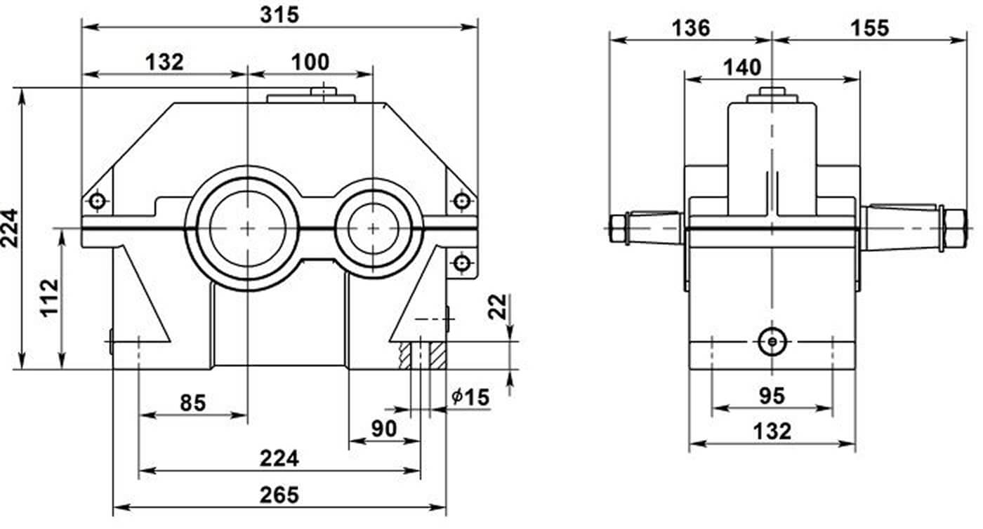 Привод комплектуется коническим либо цилиндрическим валом. В паре с редуктором 1ЦУ-100 можно использовать электродвигатель любой мощности без принудительного охлаждения привода.