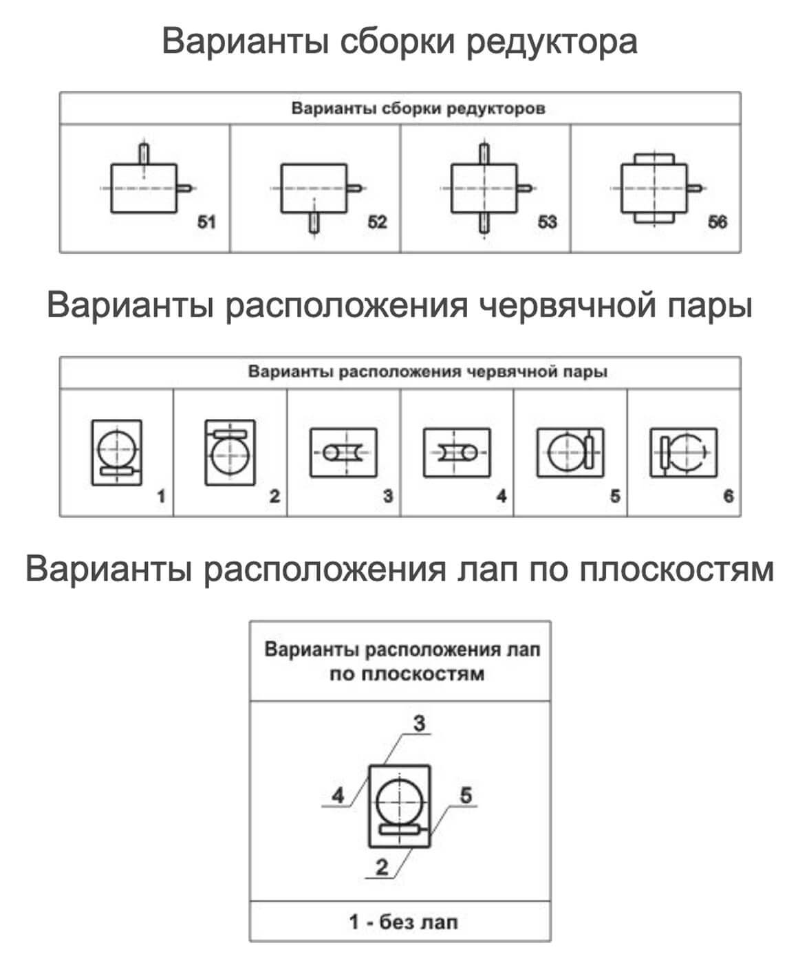 2Ч - червячный одноступенчатый редуктор 40 - межосевое расстояние, мм 50 - номинальное передаточное число 53 - вариант сборки 2 - вариант расположения червячной пары У2 - климатическое исполнение С - индекс, определяющий наличие в редукторе смазки "Трансол-200"