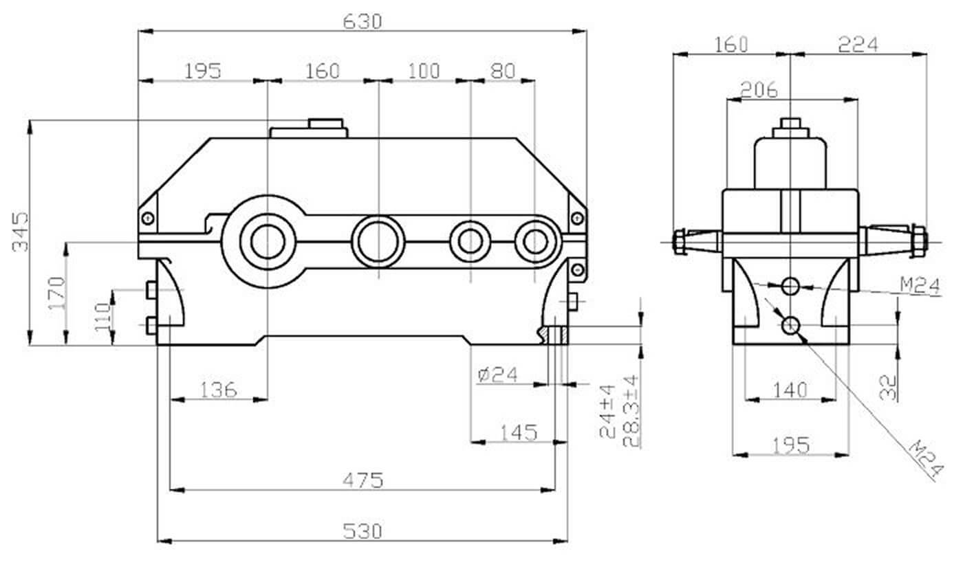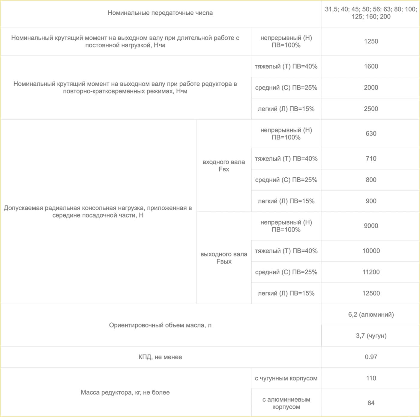 Горизонтальный цилиндрический редуктор 1Ц3У-160 имеет три передаточные ступени с косозубыми зубчатыми передачами. Агрегат обеспечивает передаточное отношение 31,5 — 200. Номинальный крутящий момент на выходном валу — 1250 Н*м. Входной и выходной валы расположены параллельно. Корпус редуктора 1Ц3У-160 производится из чугуна или алюминиевого сплава. КПД — 97%.