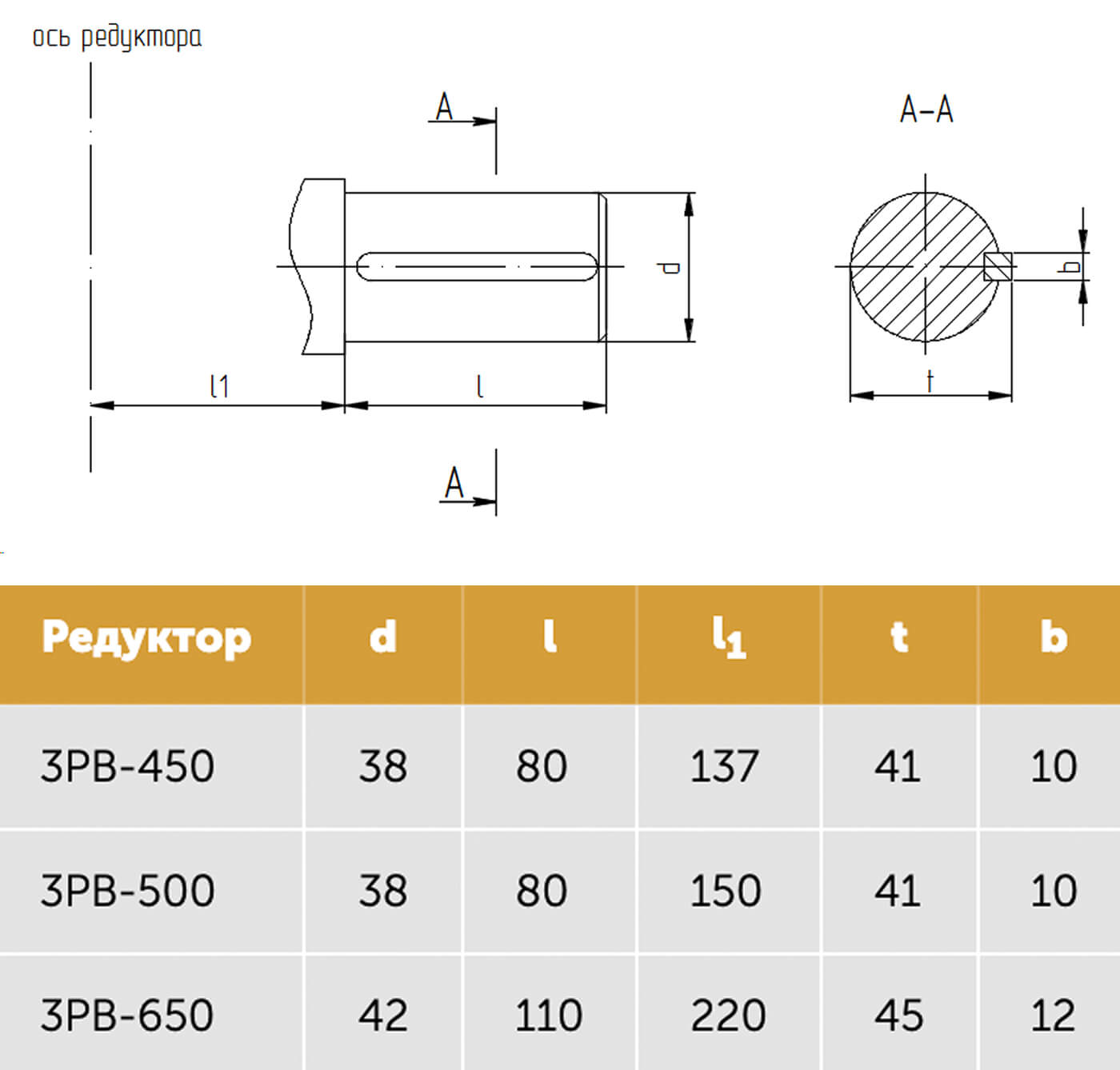 Размеры выходного вала