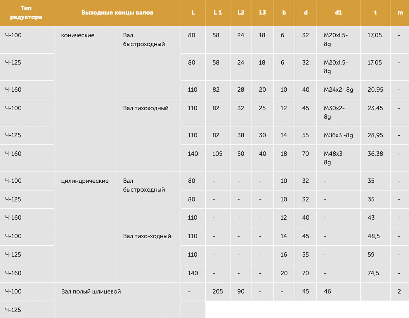 Присоединительные размеры выходных концов валов