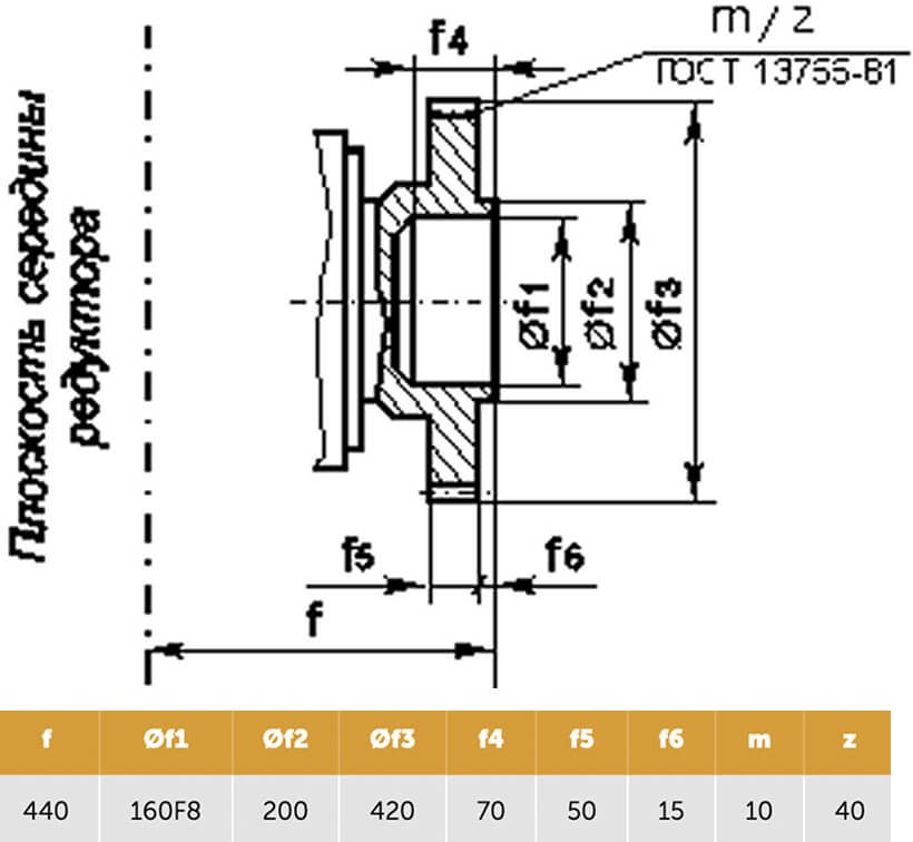 Присоединительные размеры тихоходного вала для присоединения командоаппарата